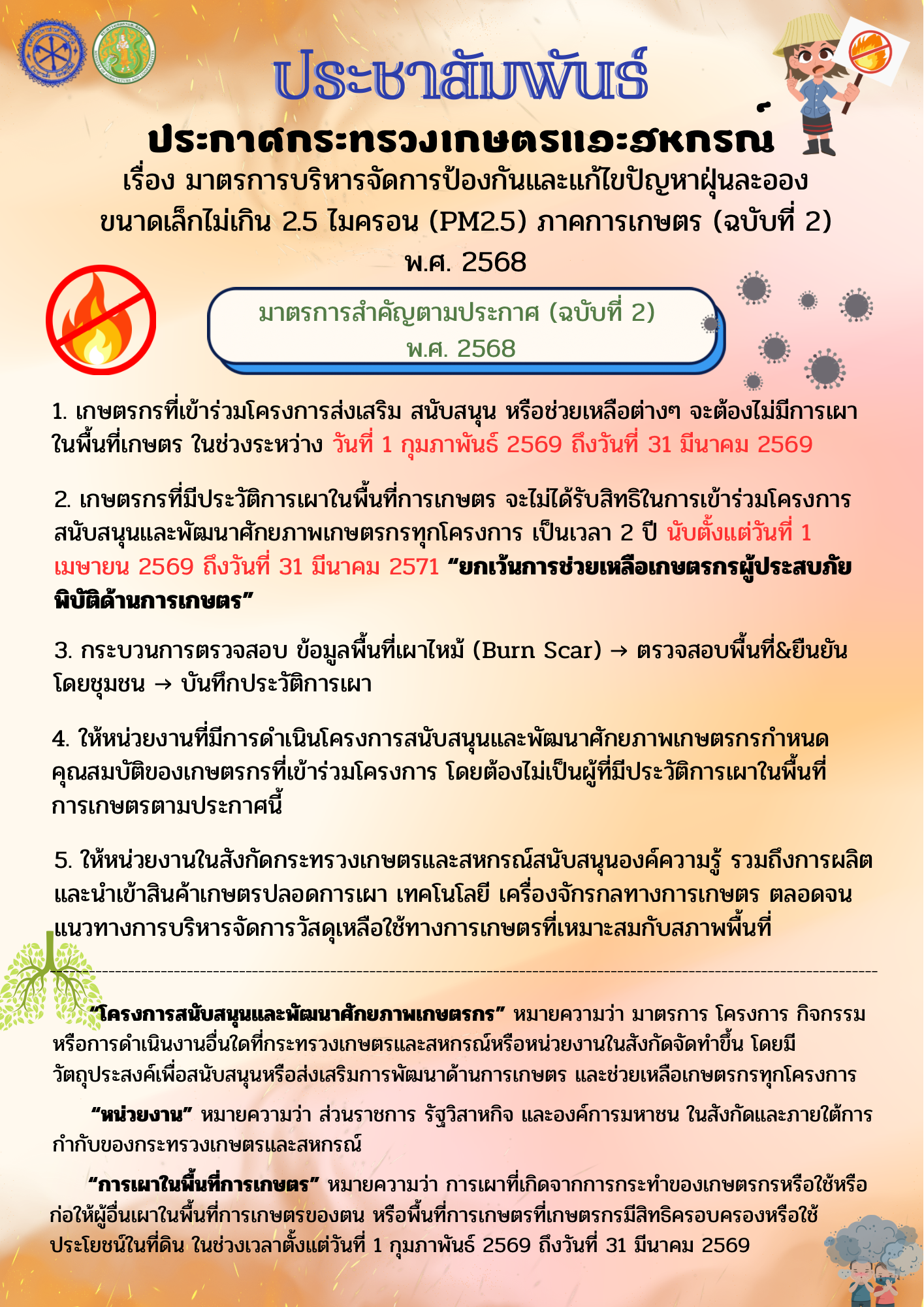 มาตรการบริหารจัดการป้องกันและแก้ไขปัญหาฝุ่นละอองขนาดเล็กไม่เกิน 2.5 ไมครอน (PM2.5) ภาคการเกษตร (ฉบับที่ 2) พ.ศ. 2568